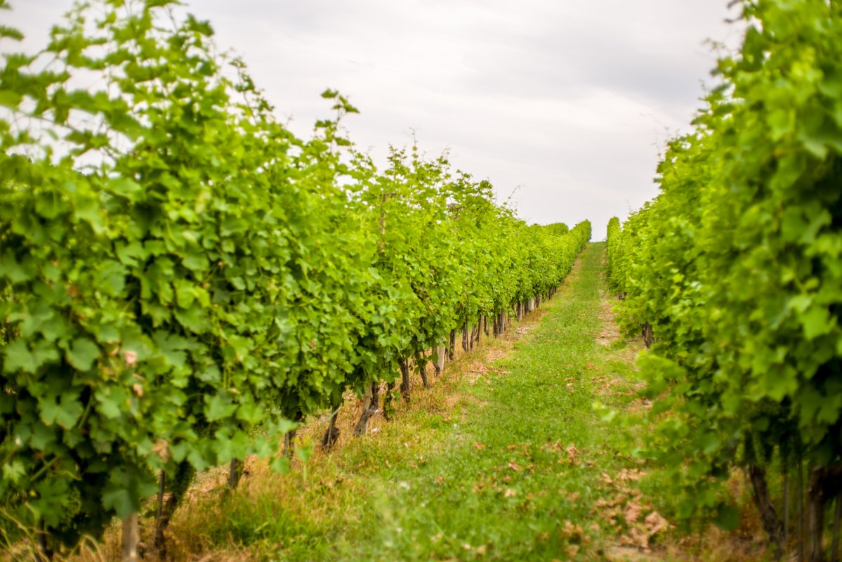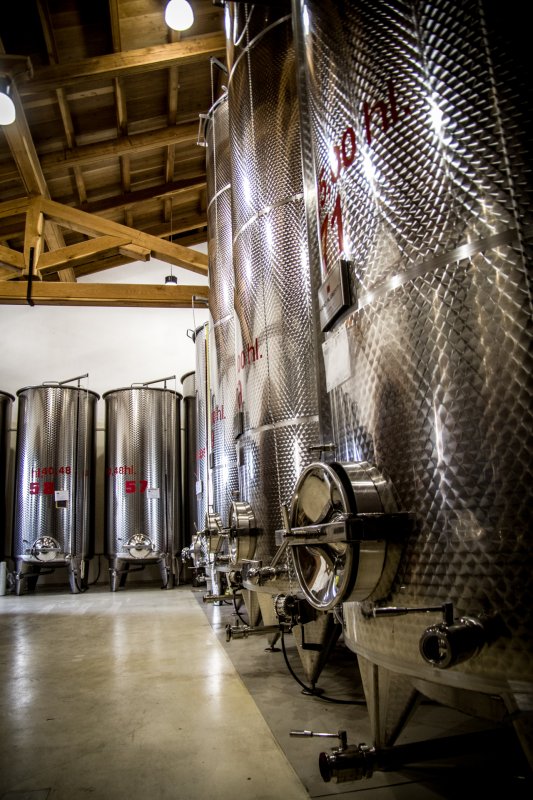 In cima alla collina, sede dell’Azienda, panorami mozzafiato di filari ordinati, quasi disegnati a mano.